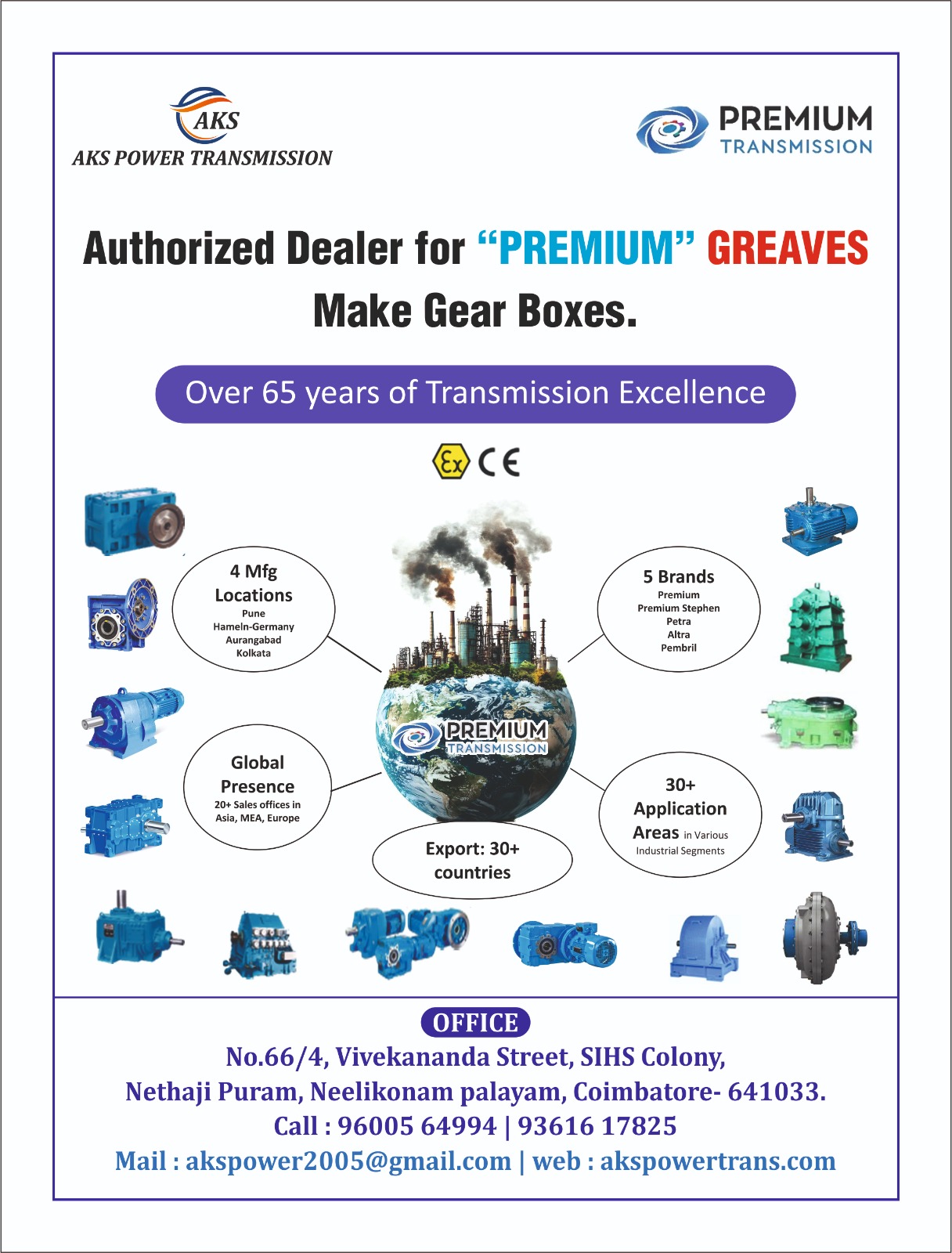 AKS POWER TRANSMISSION has a highly motivated team of Sales & Service professionals to take care of our customers – industrial, commercial & institutional. We are the authorized distributors of premium quality Gearbox Manufacture ”Premium Transmissions” in Tamilnadu. Our basic aim will always be to provide “Total Solutions” 24 x 7 in areas of its expertise and over the years we are known for the Best Technical Solutions with Unmatched Service Support. We believe in sharpening our team’s industry knowledge and undertake regular training and development initiatives.